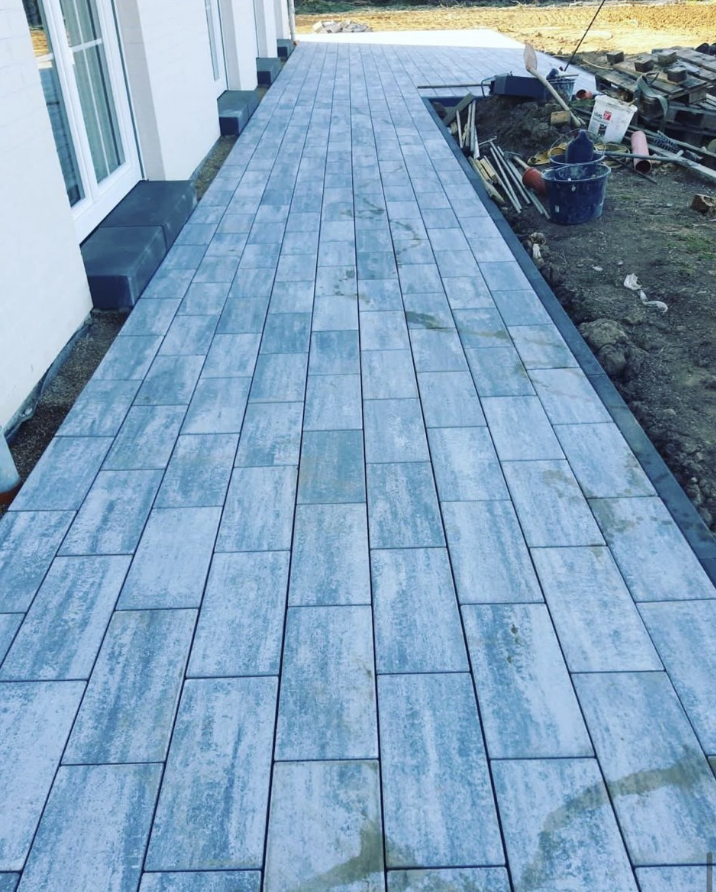 Wege, Einfahrten und Terrassen mit hochwertigen Belägen – langlebig und präzise verlegt.